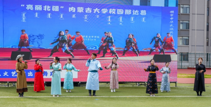 9月21日,我校在赛罕校区操场隆重举行“亮丽北疆”校园那达慕。活动以铸牢中华民族共同体意识为主线,将草原传统那达慕引入校园,将展演、比赛、体验有机融合,举行传统艺术表演、传统体育和游戏比赛、传统文化体验,演绎了一场校园特色那达慕。副校长达胡白乙拉出席开幕式并宣布那达慕开幕。活动由蒙古学学院主办,学校相关职能部门及学院负责人、师生代表参加。