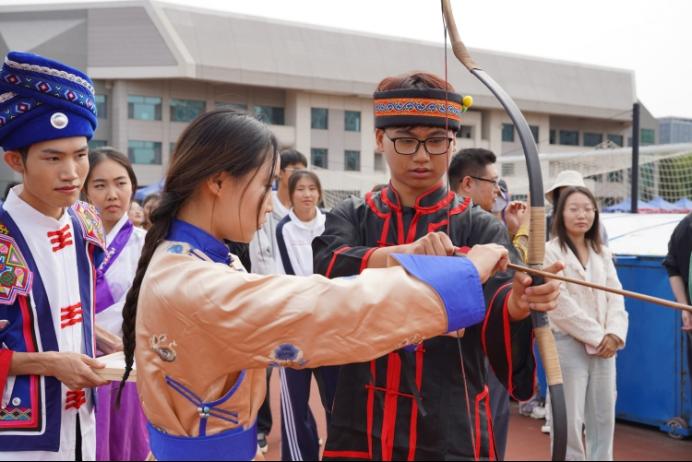 那达慕开展射箭、沙嘎、象棋、蒙古象棋、蒙古包、奶食品等传统文化体验及皮画、拓印、扎染、竹编等非物质文化遗产制作手工艺传习。各民族师生在观摩学习和动手实践中感受中华民族优秀传统文化的魅力,领悟蕴含其中的民族团结进步思想内涵。
