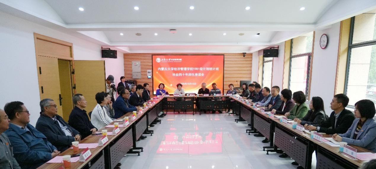 近日,我校在知行楼108教室召开1981级计划统计专业校友毕业四十周年师生座谈会。校党委书记成涛、副校长杜凤莲参加会议。1981级计划统计专业25名校友返校参加活动。