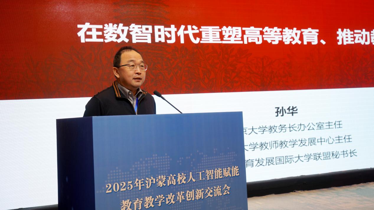 主旨报告环节,北京大学教务长办公室主任、教师教学发展中心主任孙华教授,复旦大学人工智能教育教学创新中心副主任云永旺分别以“在数智时代重塑高等教育、推动教师发展”“复旦大学“AI大课”建设情况”为题作报告。同济大学本科生院副院长郭旭东、华东师范大学本科生院拔尖与通识教育办公室主任刘俊升、上海大学教务部常务副部长彭章友、上海师范大学分析测试与超算中心主任王龚、内蒙古师范大学教务处副处长苏贵斌、内蒙古大学教务处处长朱保华分别围绕“人工智能赋能拔尖创新人才培养的同济探索与实践”“华东师范大学人工智能赋能教育教学改革的探索与实践”“面对AI发展教学新形态建设和实践”“人工智能大模型赋能教师教育能力提升”“智教融合・AI赋能:高校教育教学管理内师大实践”“内蒙古大学人工智能赋能本科教育教学改革的探索与实践”等主题分享了实践经验。