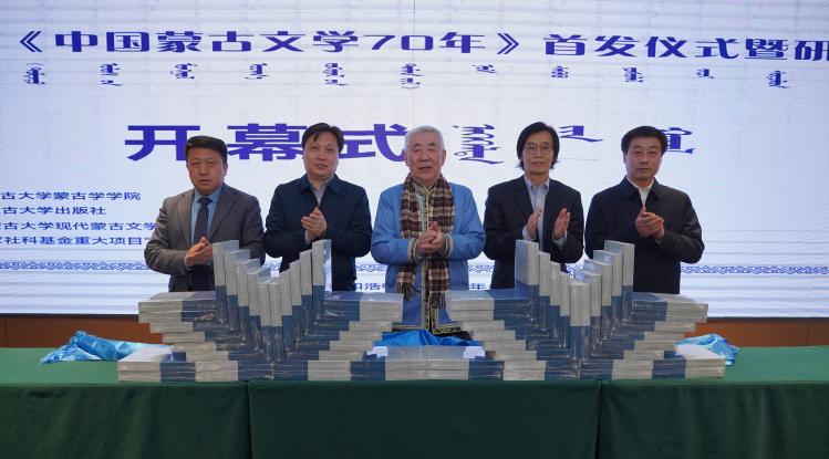 近日,《中国蒙古文学70年》首发仪式暨研讨会在呼和浩特举行。会议由我校蒙古学学院与出版社联合主办,现代蒙古文学研究中心与国家社科基金重大项目“国内外民国时期蒙古文学史料集成与编年研究”课题组共同承办,旨在系统总结中国蒙古文学70年的成就与经验,铸牢中华民族共同体意识,推动中国语言文学一流学科建设。内蒙古文联党组成员、副主席海山,副校长达胡白乙拉出席开幕式并致辞。来自中央民族大学、内蒙古文联、内蒙古大学、内蒙古师范大学、内蒙古社会科学院、内蒙古民族大学、呼和浩特民族学院等区内外高校、科研院所、文学期刊、新闻媒体的专家学者及研究生共100余人参会。