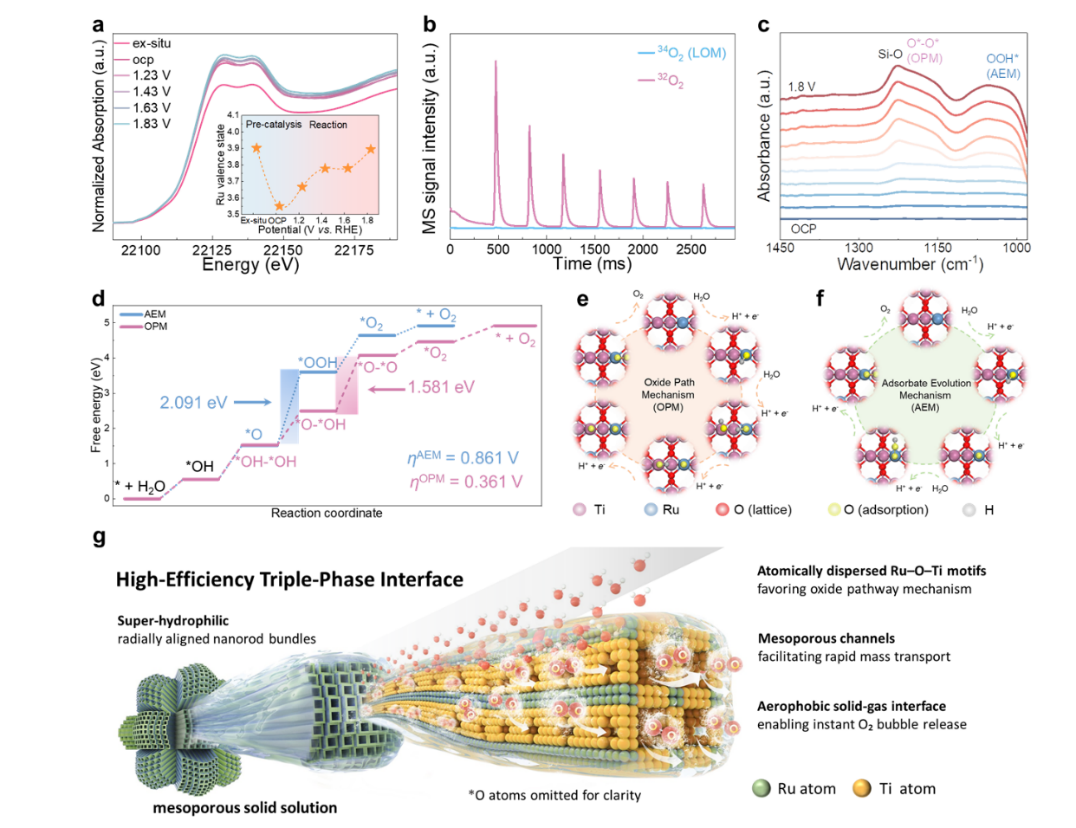 质子交换膜水电解(PEMWE)因产氢纯度高、响应快、系统紧凑,被认为是面向可再生能源波动供电的关键绿氢技术之一。但其阳极析氧反应(OER)动力学缓慢,带来显著能量损失,因此需要同时具备高活性与强耐久性的酸性OER催化剂。目前Ir基材料仍是主流,但资源稀缺与成本问题限制规模化应用;RuO2作为可替代体系虽具较高本征活性,但在工业PEMWE常见的高电流密度(>1 A cm-2)下,电池电压升高会加速Ru过氧化形成可溶高价物种(如RuO52-),进而引发溶解、相结构坍塌与活性面积损失。更重要的是,许多稳定化策略(掺杂/缺陷/异质结构等)往往忽略了在“水供给+高电流”工况下极其关键的催化剂-电解质-气体三相界面(TPI):如果润湿、传质与气泡脱附不充分,会造成界面淹没、浓差极化与传质限制,进一步加速Ru基催化剂衰减。