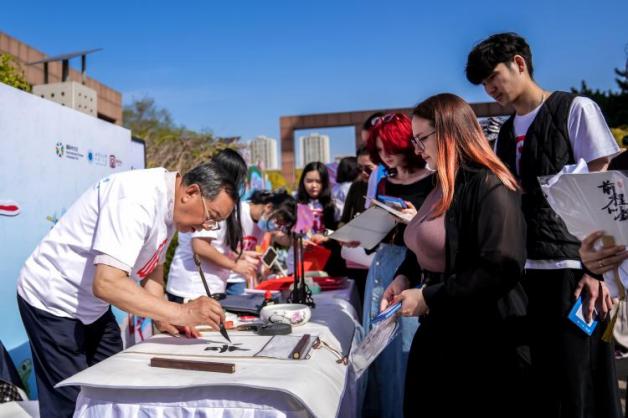 中文承载着千年华夏文明的记忆,是连接古今、联接世界的桥梁。“国际中文日”已成为全球中文爱好者的节日和世界了解中国的窗口。今年活动的主题为“中文:点亮多彩梦想”。我校以中国古典名著《西游记》为文化主线,采用“通关文牒集章”形式,设置甲骨文猜字、成语迷阵、断句挑战、诗词飞花令、皮影戏体验、非遗漆扇制作及书法题名等互动环节。非遗传承人现场演绎《西游记》故事皮影戏,留学生们亲手操作体验;在汉字、成语、诗词等趣味关卡中,大家锤炼了语言技能;通过漆扇、书法创作,亲身感受传统工艺与书画之美。